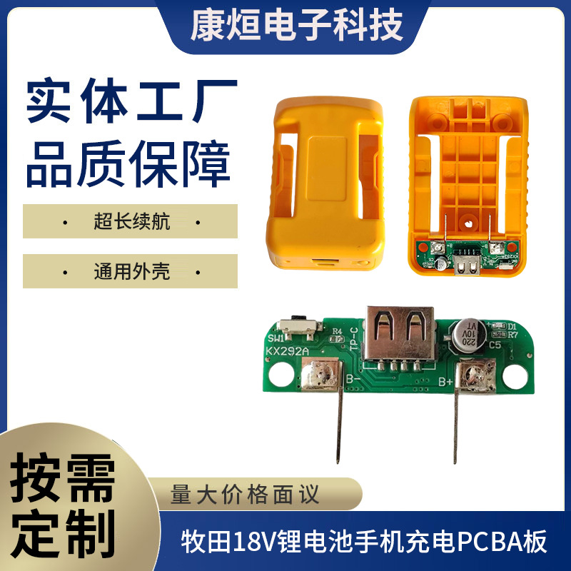 定制牧田18V电动工具外挂手机充器PCBA板锂电池容量大功率充电器