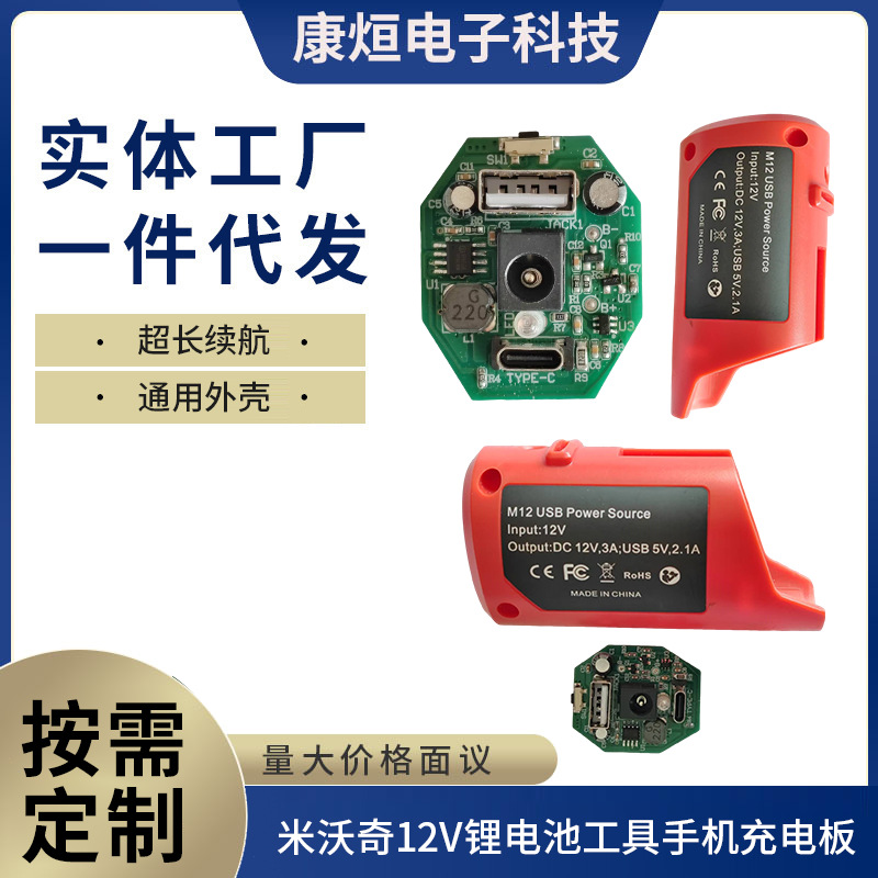 米沃奇12V锂电池外挂手机充器电动工具挂架容量大功率pcba充电器