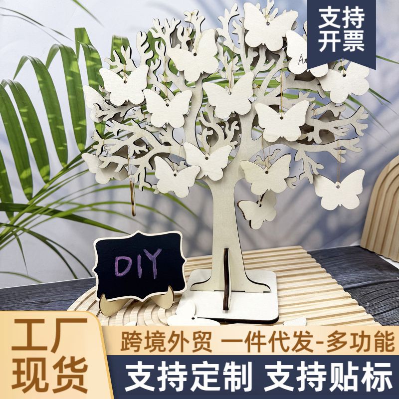 现货木质蝴蝶家庭树礼品挂饰摆件镂空木片饰品小挂件蝴蝶签到树