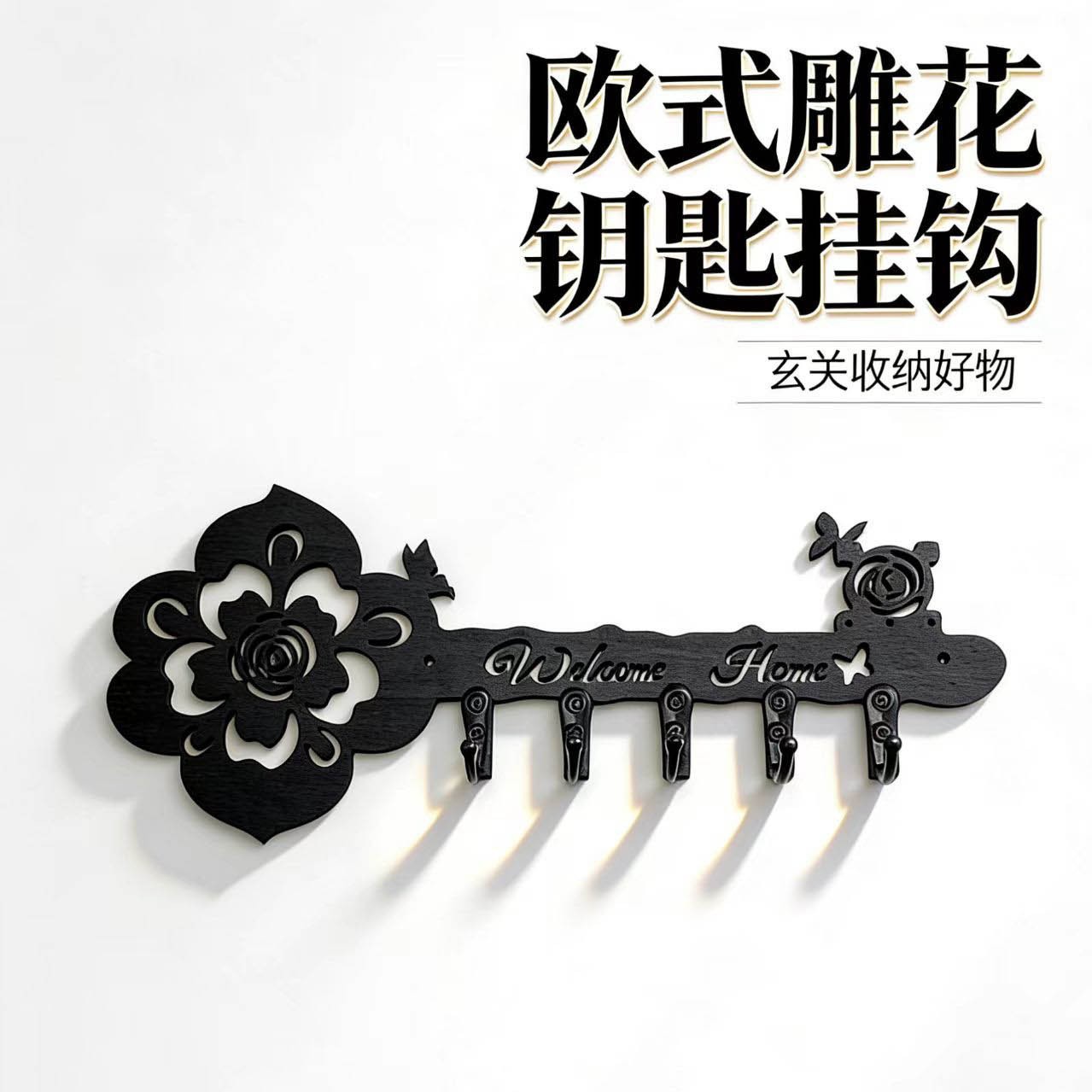 跨境创意设计爆款HOME字母置物排钩厨房挂钩家居钥匙收纳铁艺挂架
