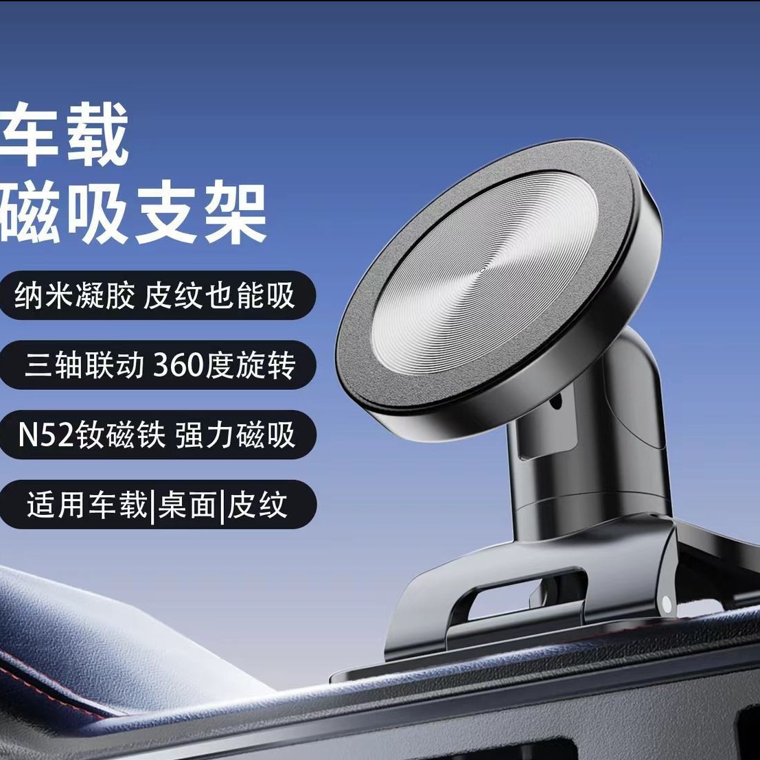跨境新款汽车仪表台车载支架粘贴式旋转车载magsafe磁吸手机支架