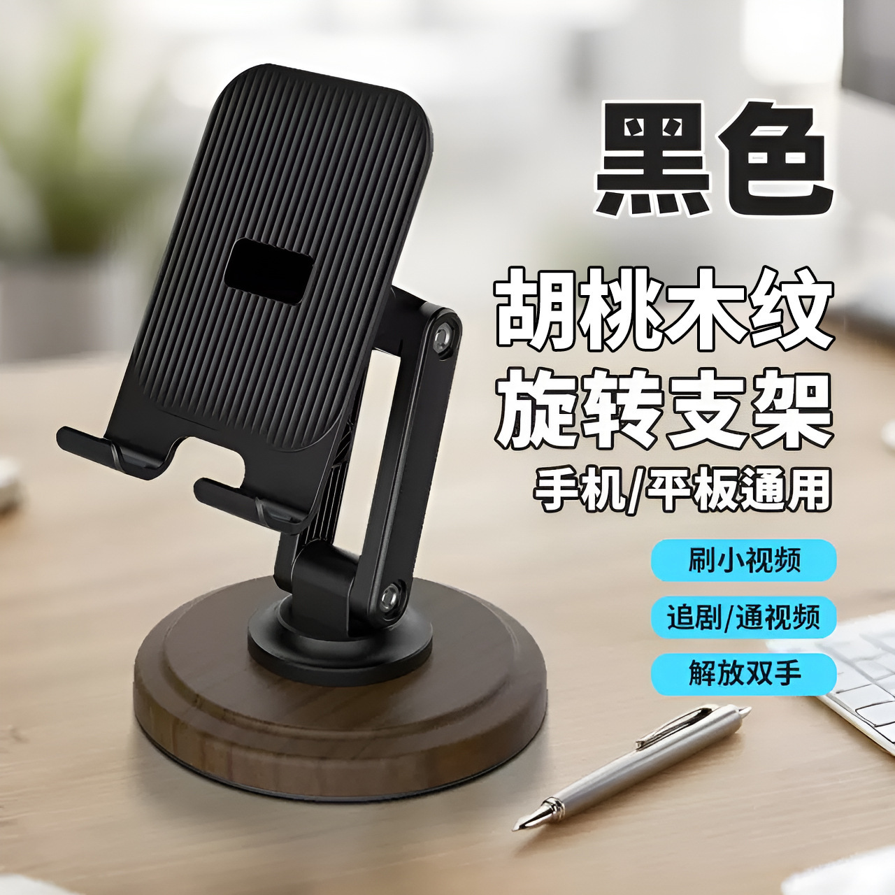 新款手机支架桌面懒人直播木纹色桌面支架可旋转金属手机支架LOGO