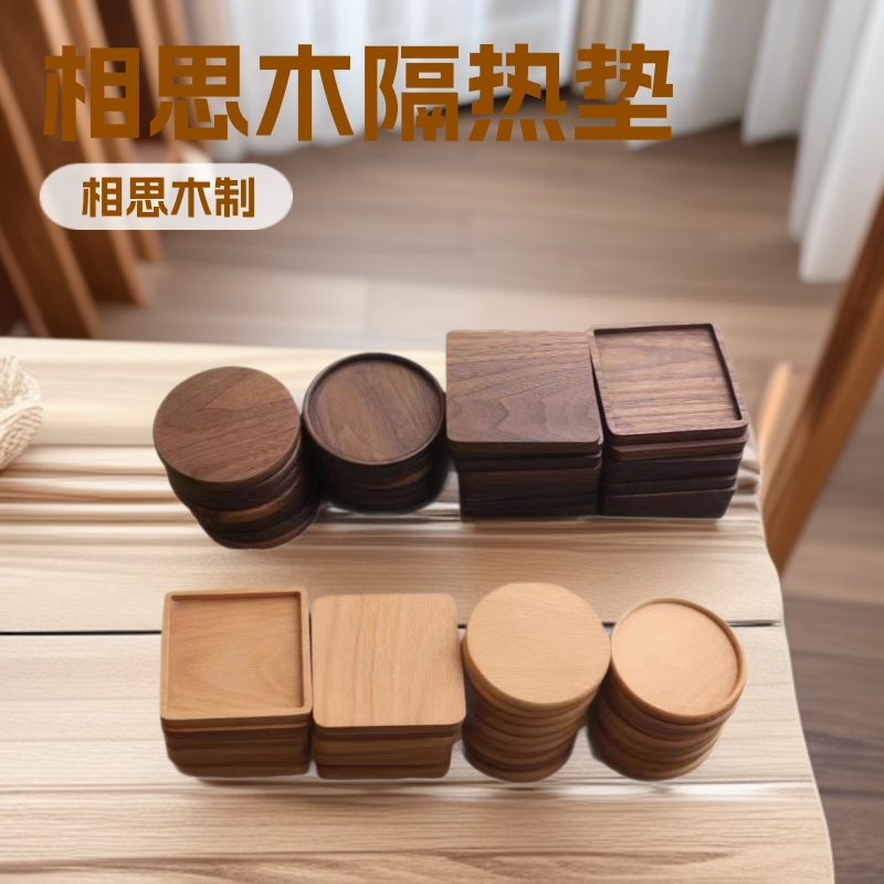 创意简约式木制圆形茶杯垫方形杯托日式隔热垫咖啡底座相思木材质