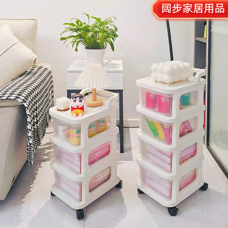 小推车零食抽屉式置物架多层收纳架落地移动家用客厅奶油储物架