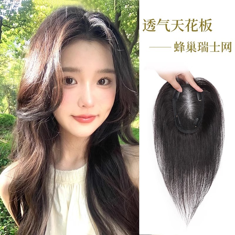 瑞士网假发片女自然透气增发蓬松头顶盖白发全真人发全手织补发片