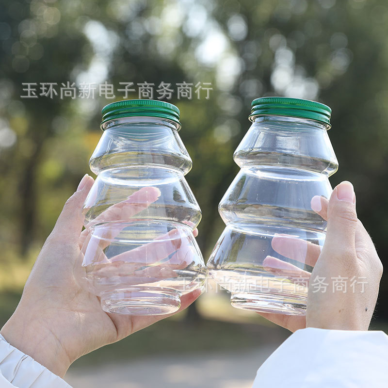 高颜值圣诞树瓶一次性冷饮咖啡塑料空瓶子食品级零食灌装瓶