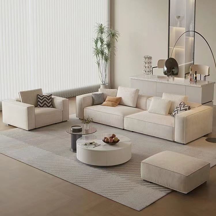 高端豆腐块麂皮绒沙发极简北欧客厅大小户型真皮贵妃直排布艺沙发