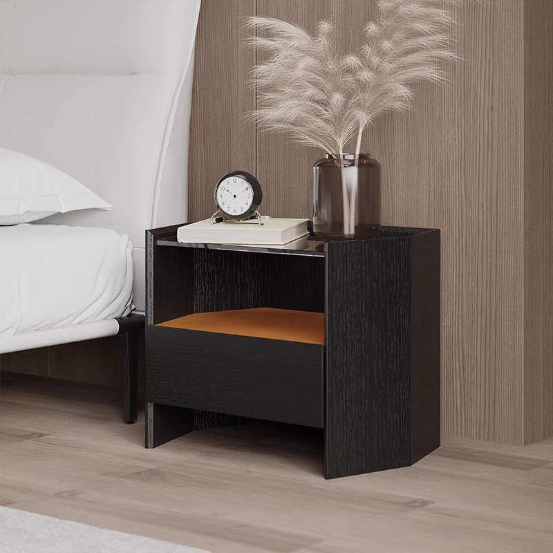 意式极简六边形床头柜简约现代设计师百搭卧室黑橡木色玻璃床边柜
