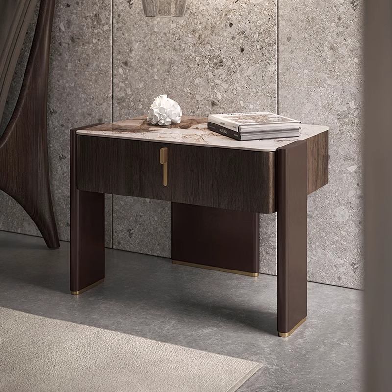 现代简约新中式岩板床头柜储物柜卧室床边柜计师轻奢胡桃木色柜子
