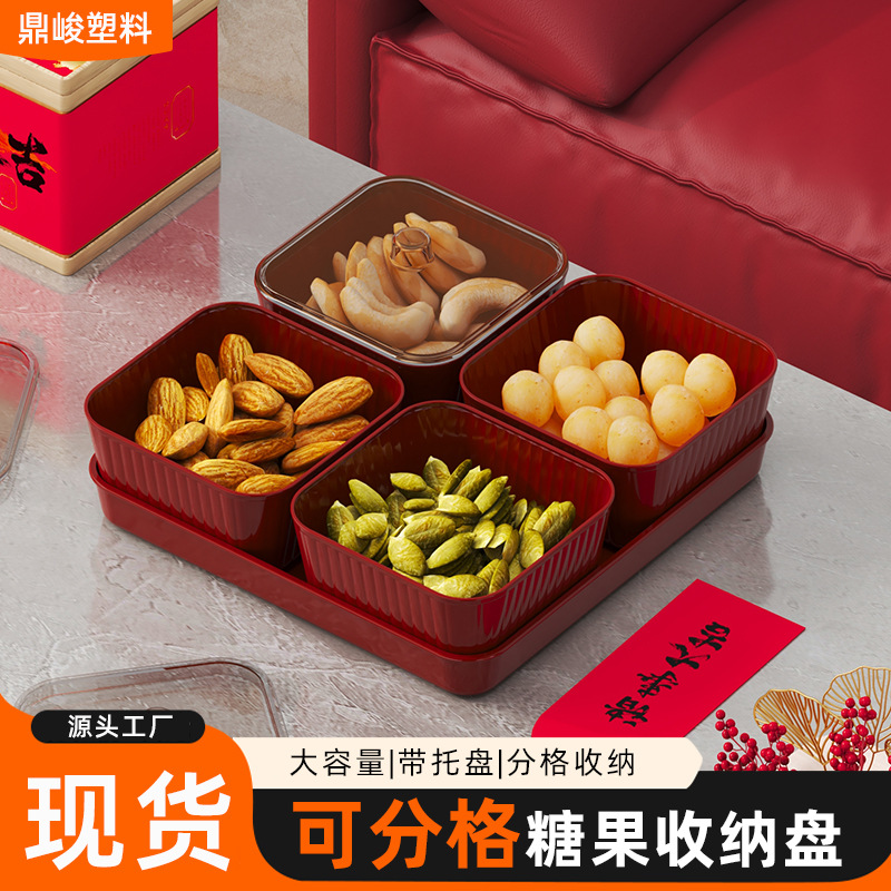 可分格糖果收纳盒简约客厅糖果盒四宫格零食干果水果盘年货摆放盘