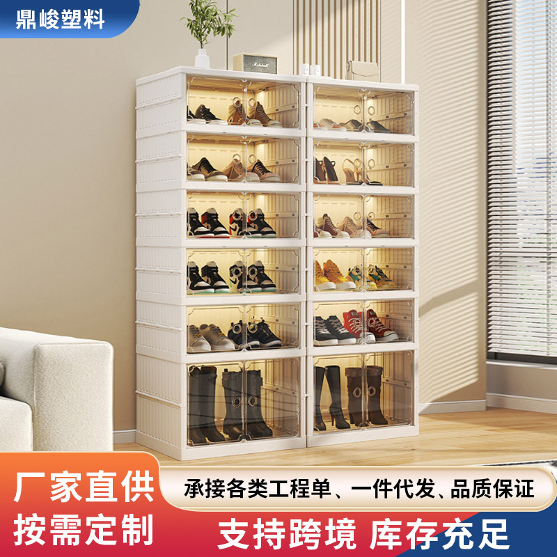 家用折叠鞋柜免安装一体式塑料透明双排收纳柜客厅玄关多层鞋盒