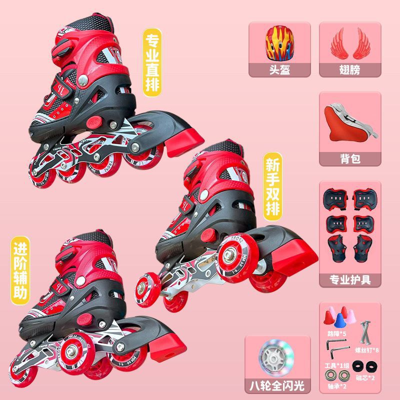 3-5-7-8-12岁双排三角辅助溜冰鞋全套小孩直排轮儿童滑鞋可调全闪