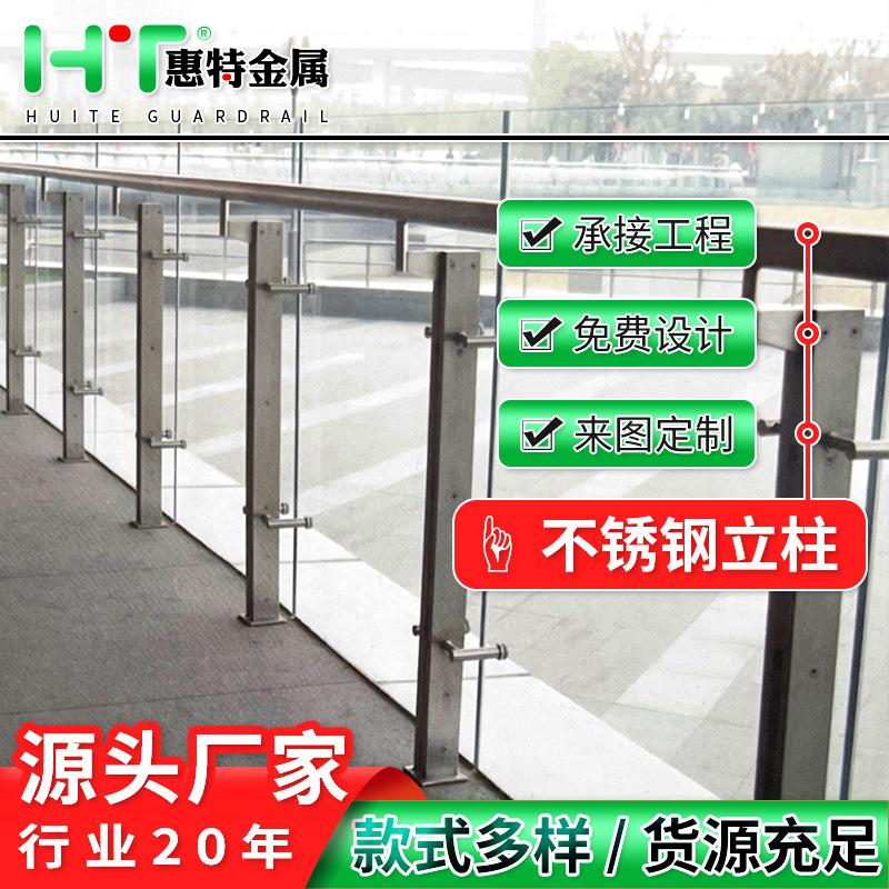 304/316不锈钢立柱楼梯扶手 玻璃栏杆商场广场阳台桥梁地铁围护栏