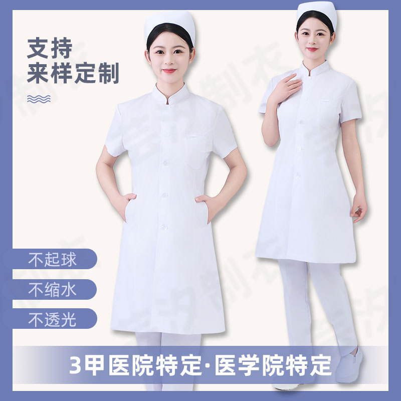 修身收腰长款短袖护士服实习医生美容女护士服夏季女款立领工作服