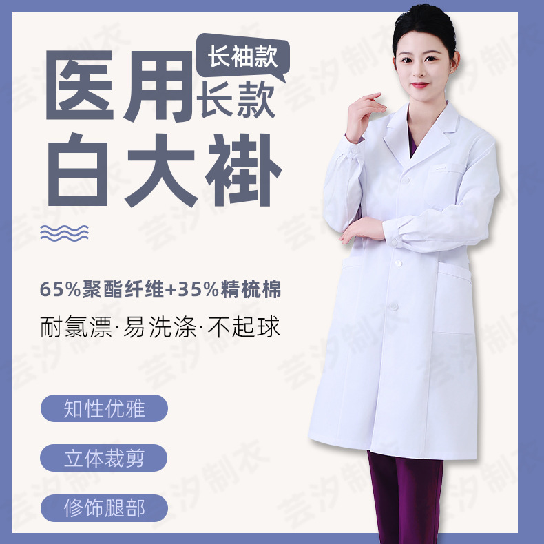 白大褂实验室工作服医生护士服医护服长袖长款药店美容医师服工装