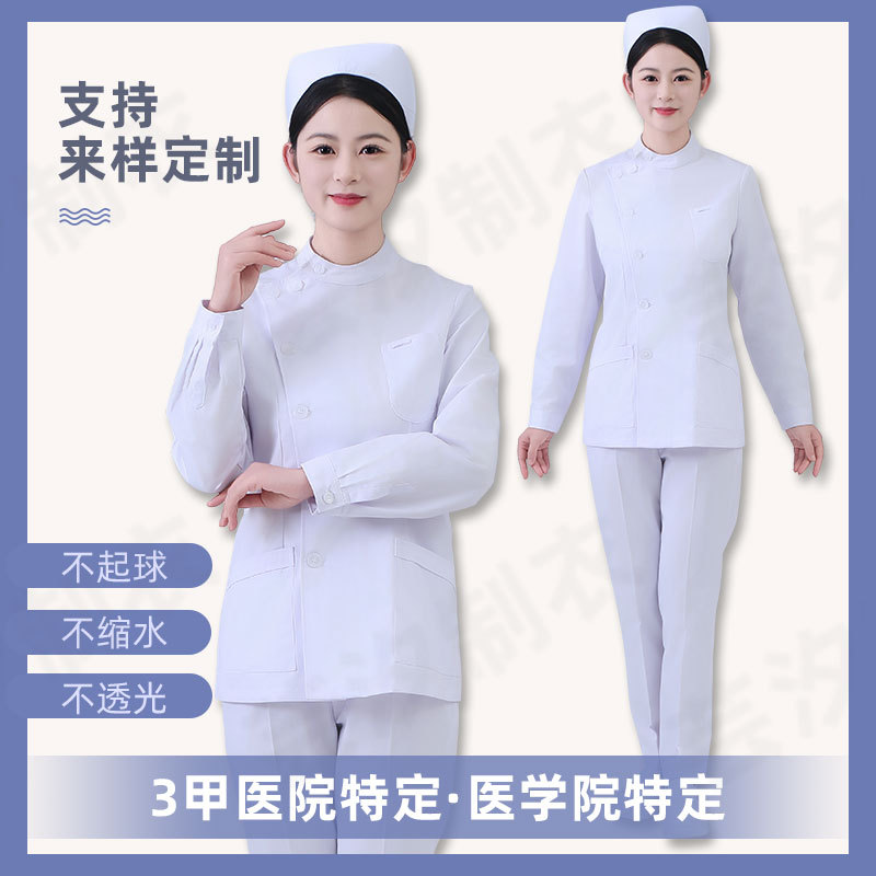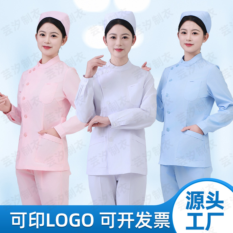 医院长袖偏襟护士服春秋立领牙科口腔分体套装医护两件套工作服