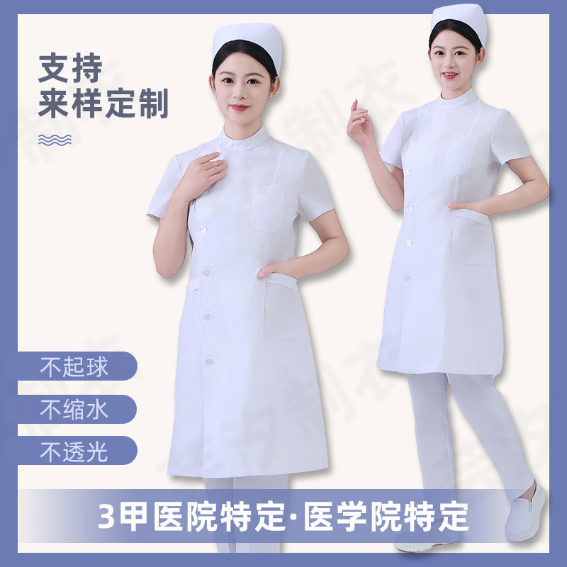 偏襟立领长款白大褂女医护工作制服护士服夏季短袖美容师护理服