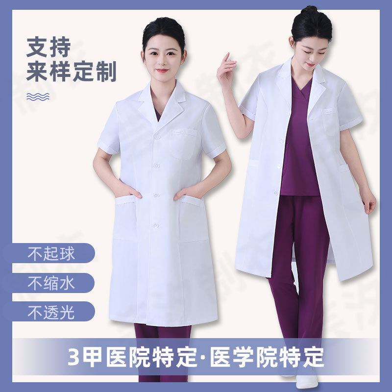 白大褂医生护士服短袖化学实验服女医院实习食品厂大码工作服医用