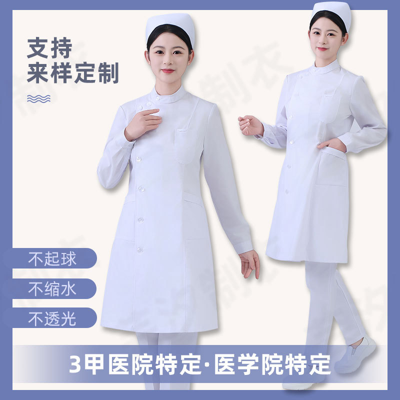 白色长袖护士服夏季偏襟立领白大褂口腔门诊短袖医生工作制服医护