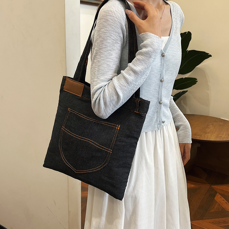 2026新款休闲帆布包包大容量女腋下包森萌牛仔布托特包学生上课包