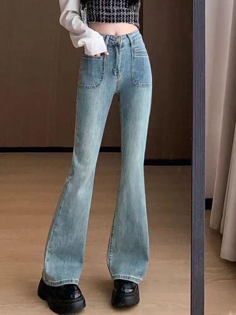 跨境外贸欧美时尚辣妹微喇裤提臀高腰修身百搭弹力牛仔喇叭裤女士