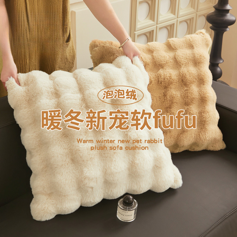 双面兔毛抱枕沙发客厅靠枕办公室靠背冬季床头靠垫不含芯