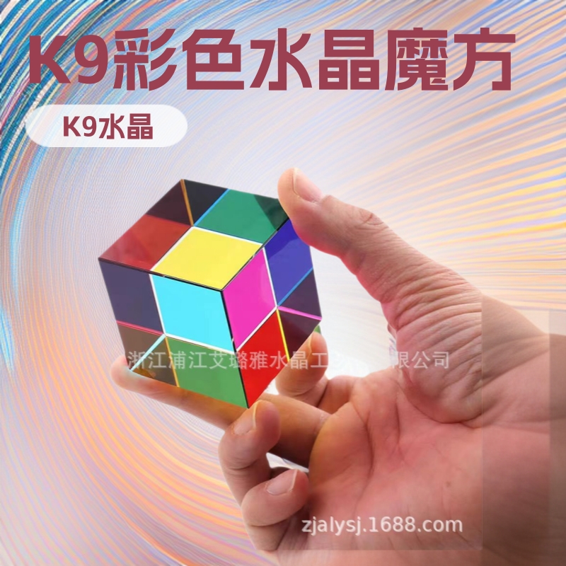 厂家直销k9彩色方体水晶魔方合色棱镜金字塔桌面玩具跨境装饰摆件