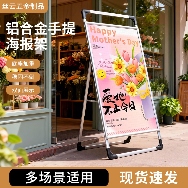 批发手提海报架户外防风广告展牌KT板铝合金支架单面折叠宣传立牌