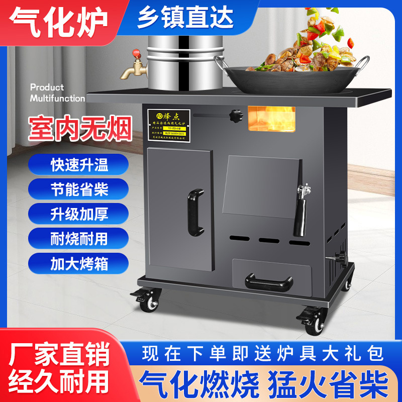 气化无烟取暖炉冬天室内家用农村柴火灶煤两用铁锅台移动露营烤火