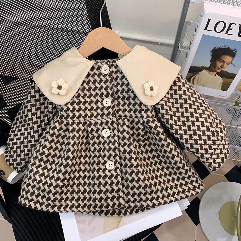 女童呢子外套秋冬洋气2025新款小童千鸟格女宝宝加绒加厚毛呢冬装