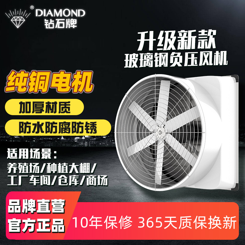 钻石牌玻璃钢负压风机工厂用防爆轴流抽风排气通风排烟专用节能