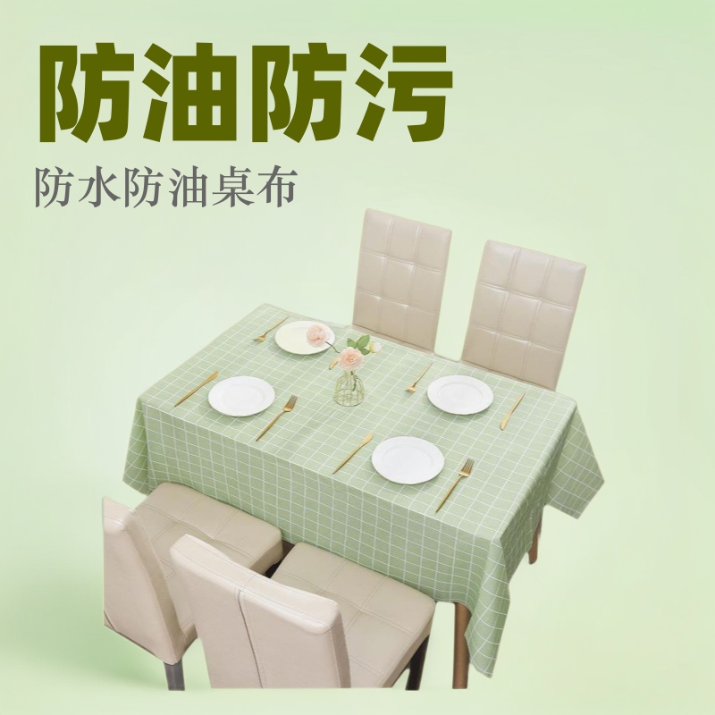 网红款北欧风格子桌布免洗防水防油防尘餐桌垫加厚PEV长方形桌布