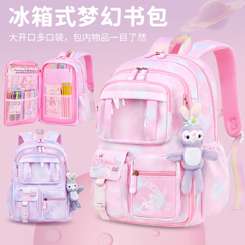 新款小学生书包女冰箱开门轻便大容量1-6年级时尚儿童双肩包批发