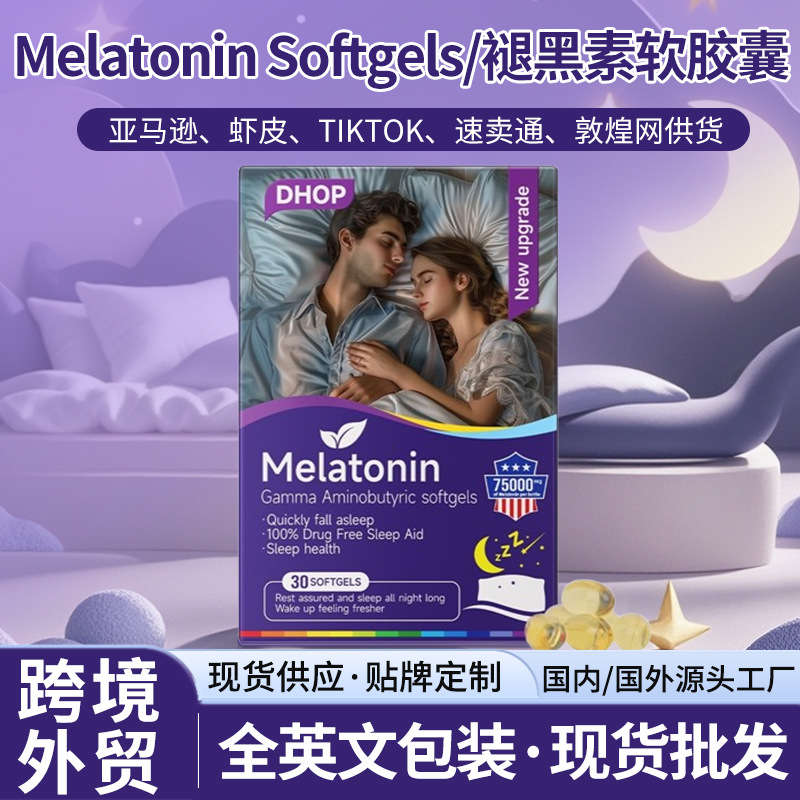 褪黑素软胶囊 跨境外贸现货南非醉茄GABAy氨基丁酸褪黑素睡眠胶囊