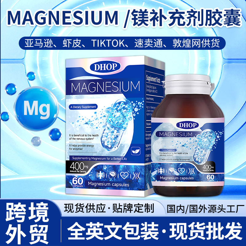 三重镁胶囊 现货跨境外贸Magnesium补充剂柠檬酸镁甘氨酸镁胶囊
