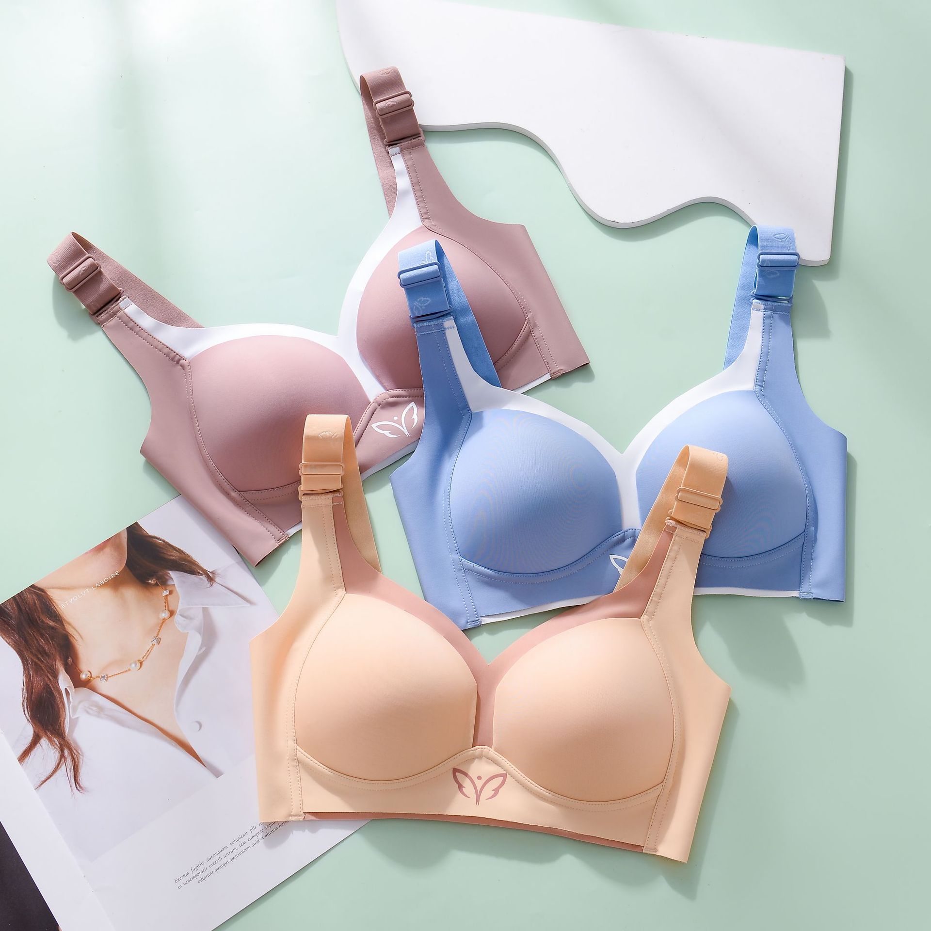 新款MM无痕内衣女大胸显小聚拢无钢圈收副乳调整型固定杯文胸罩