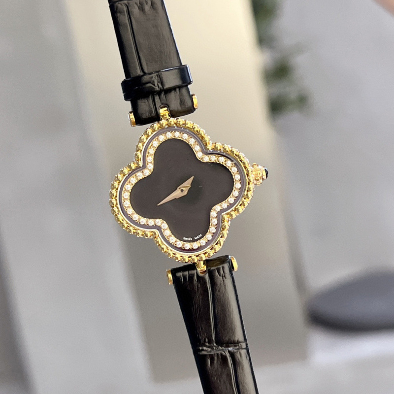 微商代发四叶草外贸批发时尚黑金梵家高颜值休闲轻奢石英VC女表