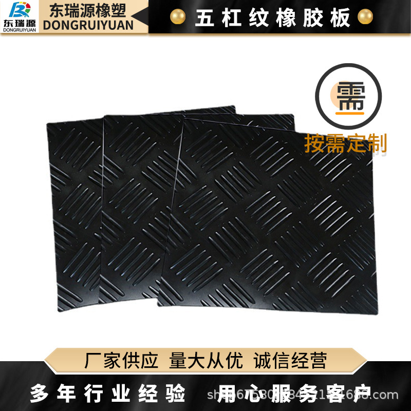 五杠纹橡胶板 工业用防滑橡胶板 五道杠防水绝缘耐磨橡胶垫厂家