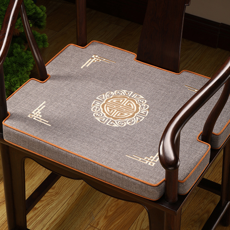 中式坐垫椅垫卡口凳子垫高档茶椅圈椅太师椅海绵乳胶座垫棉麻