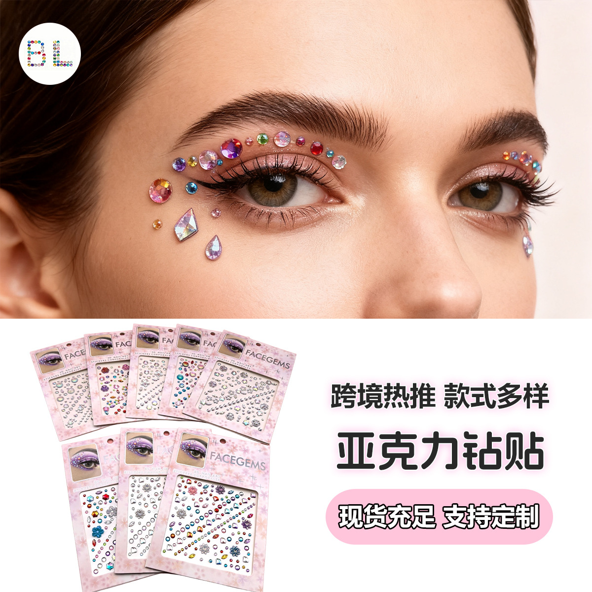 外贸亚克力眼贴水晶钻石贴纸宝石手工贴头发装饰贴DIY水钻贴批发