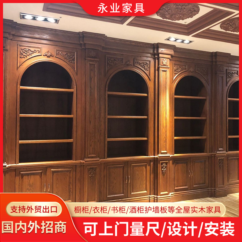 展示柜 别墅书房书架 实木雕花书柜 实木全手工制作书柜免费设计