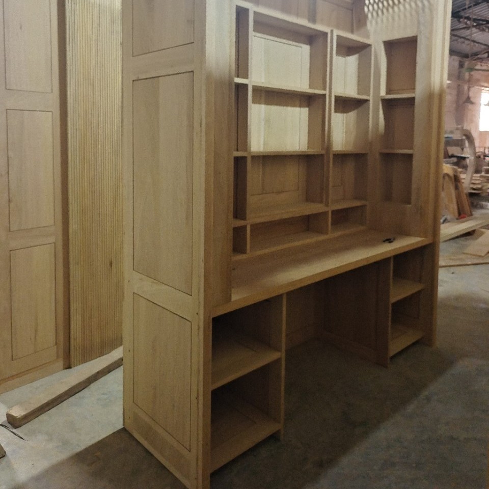 源头厂家直销沙比利原木书柜豪华实木柜一体 全原木整装支持外贸