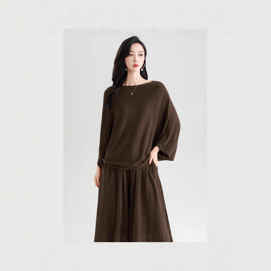 2025秋季新款蝙蝠袖套头针织衫宽松休闲一字领纯色女装上衣毛衣女