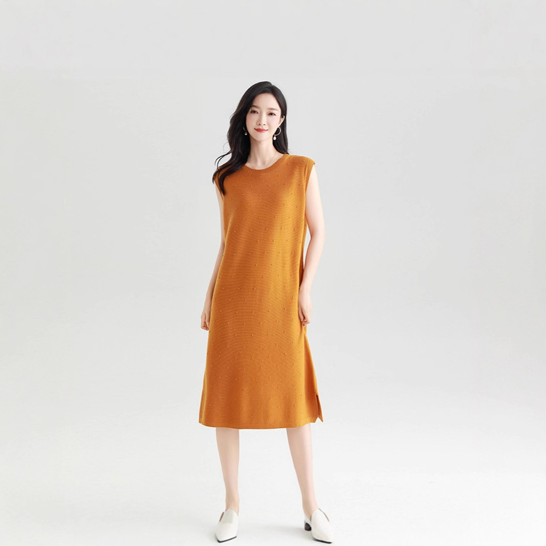 2025秋冬新款圆领无袖宽松休闲大码女装气质百搭纯色连衣裙毛衣女