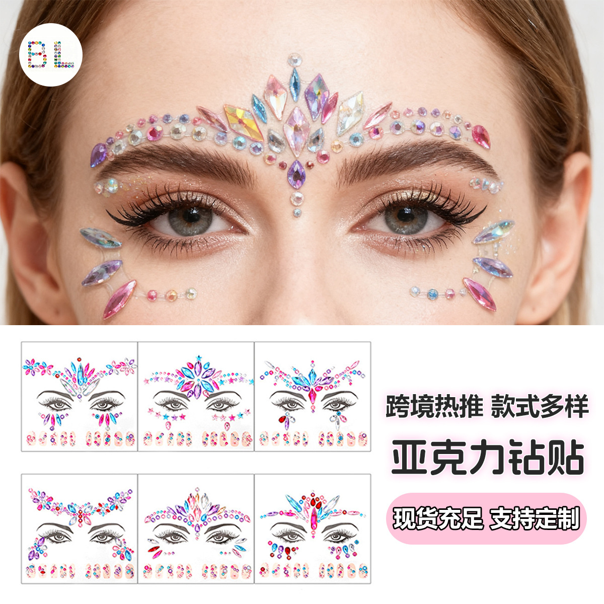 跨境脸部贴钻亚克力钻石贴纸舞会化妆手工diy眉心贴眼部钻贴批发