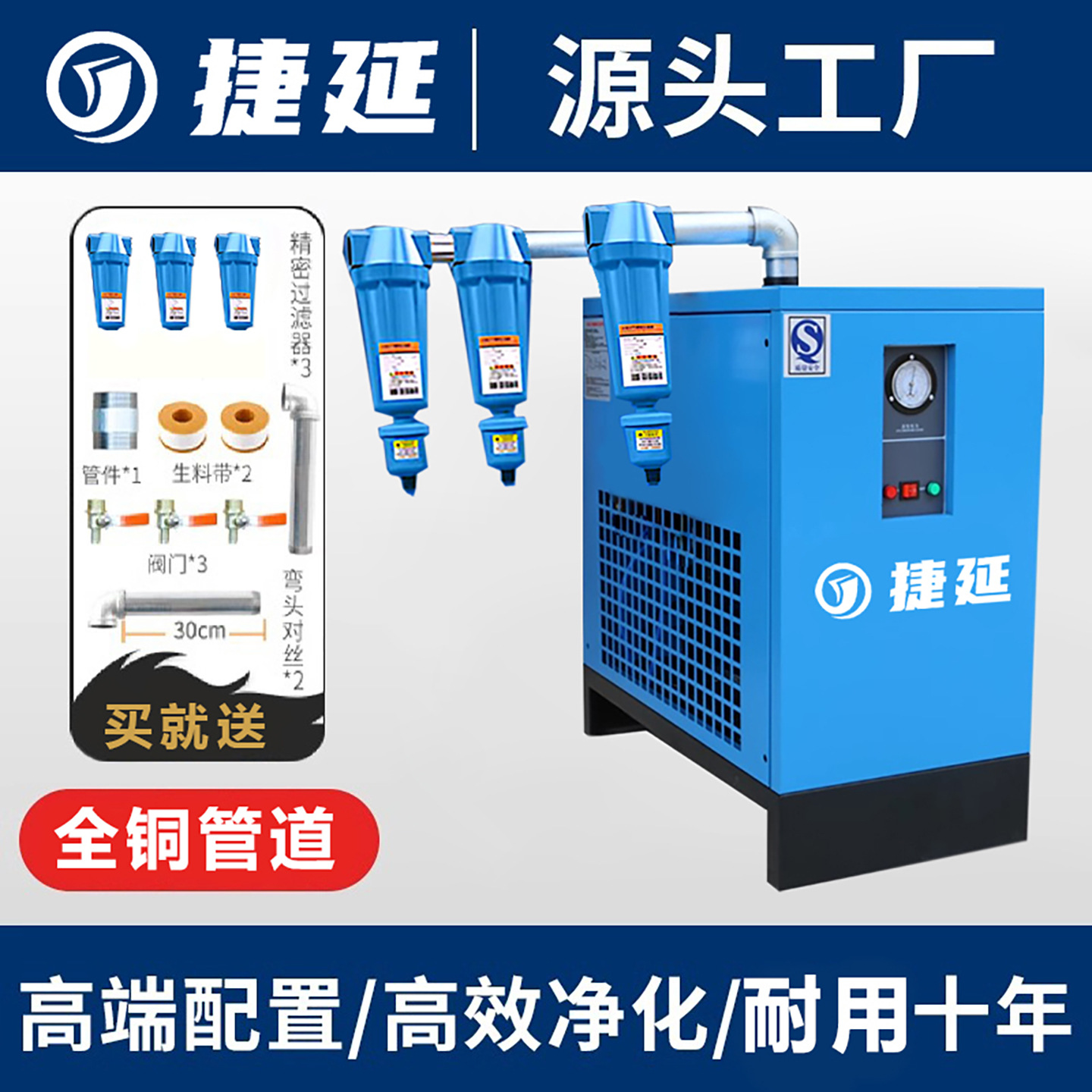 空压机冷冻式干燥机空气压缩机油水分离器工业级空气除水过滤器