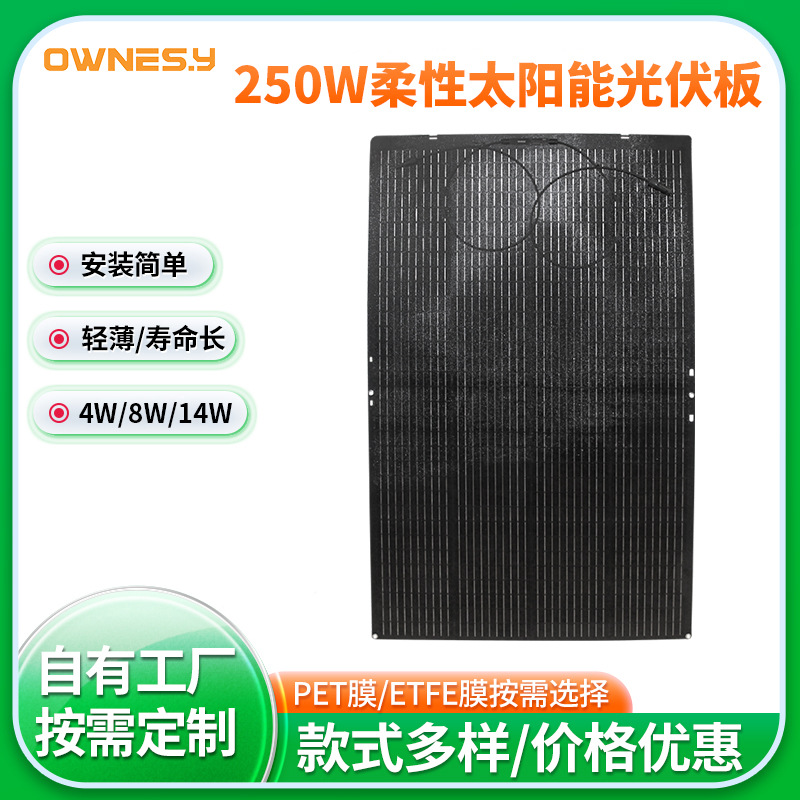 柔性太阳能光伏板250W发电板PET组件防水可弯曲户外房车供电专用