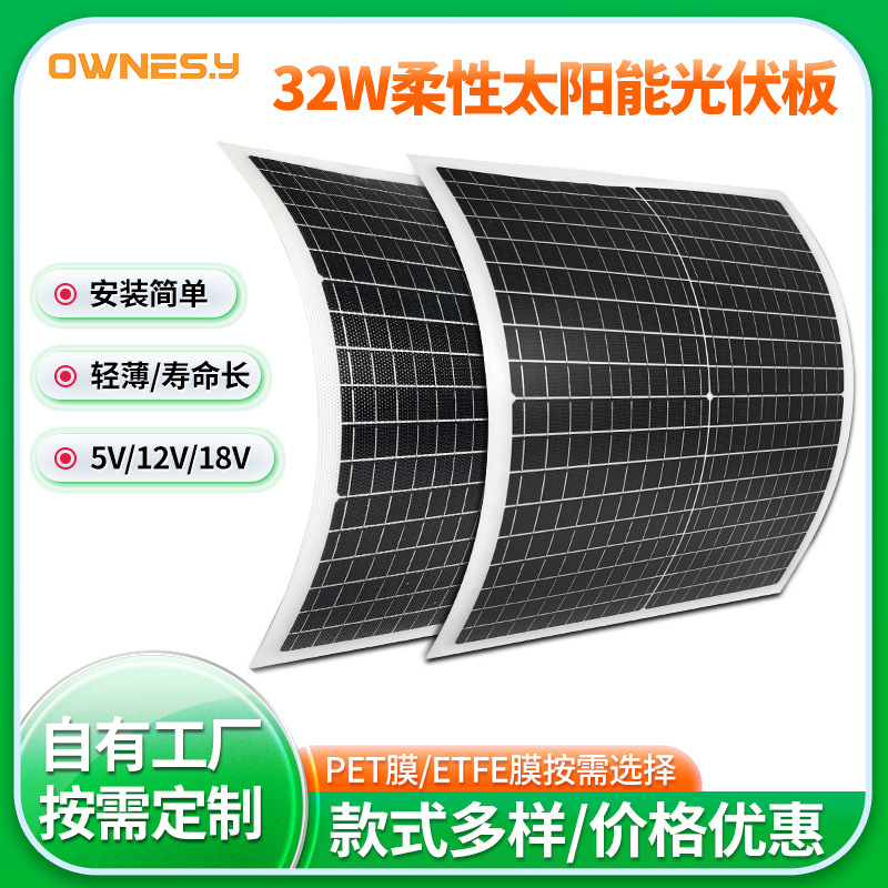 太阳能光伏板32W18V户外照明便携移动防水柔性单晶发电板单晶硅