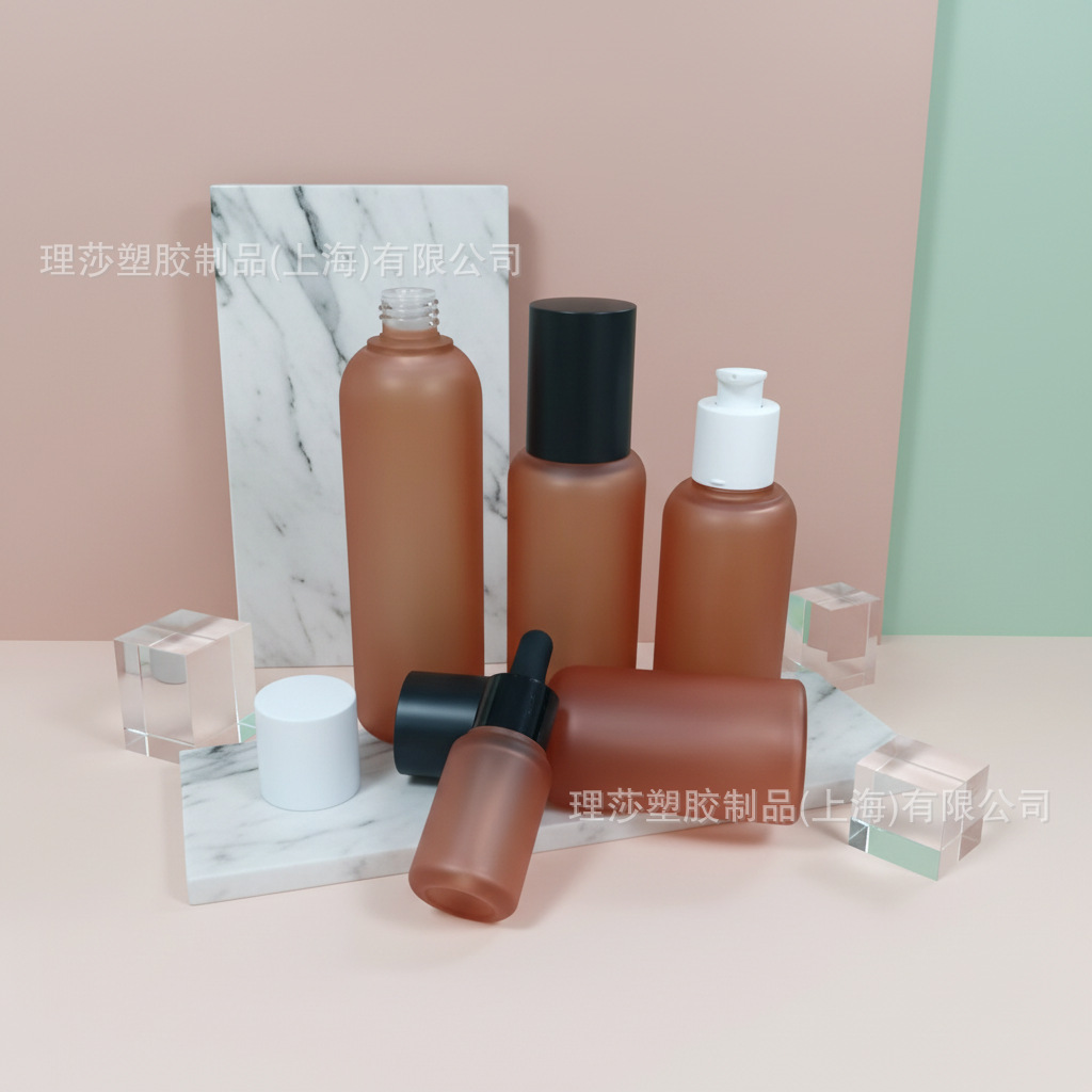 高颜值紫色身体乳圆肩塑料瓶按压乳液瓶磨砂膏罐护肤套装瓶