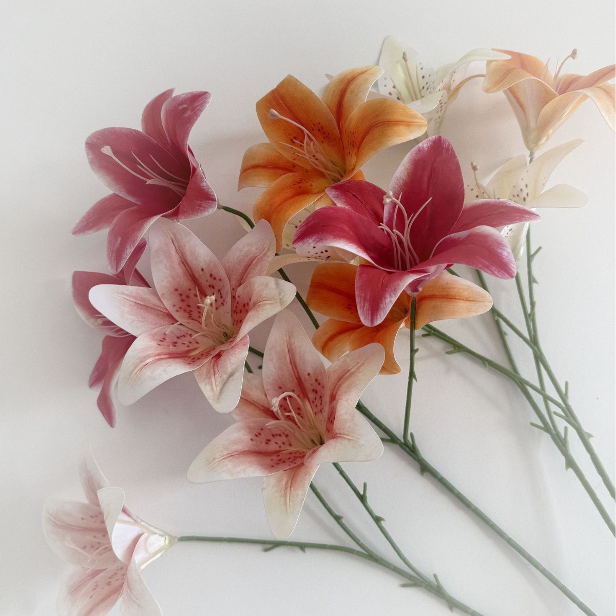 纯3头百合仿真花客厅摆件插花婚庆花艺成品拍摄道具花卉